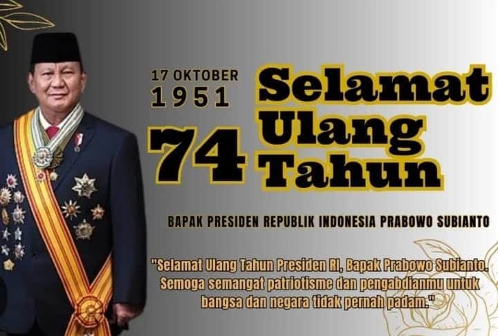 Jakarta— Langit Oktober menyala dengan semangat merah putih. Hari ini, Presiden Republik Indonesia, Prabowo Subianto, genap berusia 74 tahun.