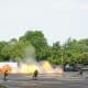 Gerakan mendadak tersebut membuat bagian depan bus menyerempet stang sepeda motor korban. Motor tak stabil dan korban terpental. Polisi memastikan sopir dalam kondisi sadar dan hasil tes urin negatif.