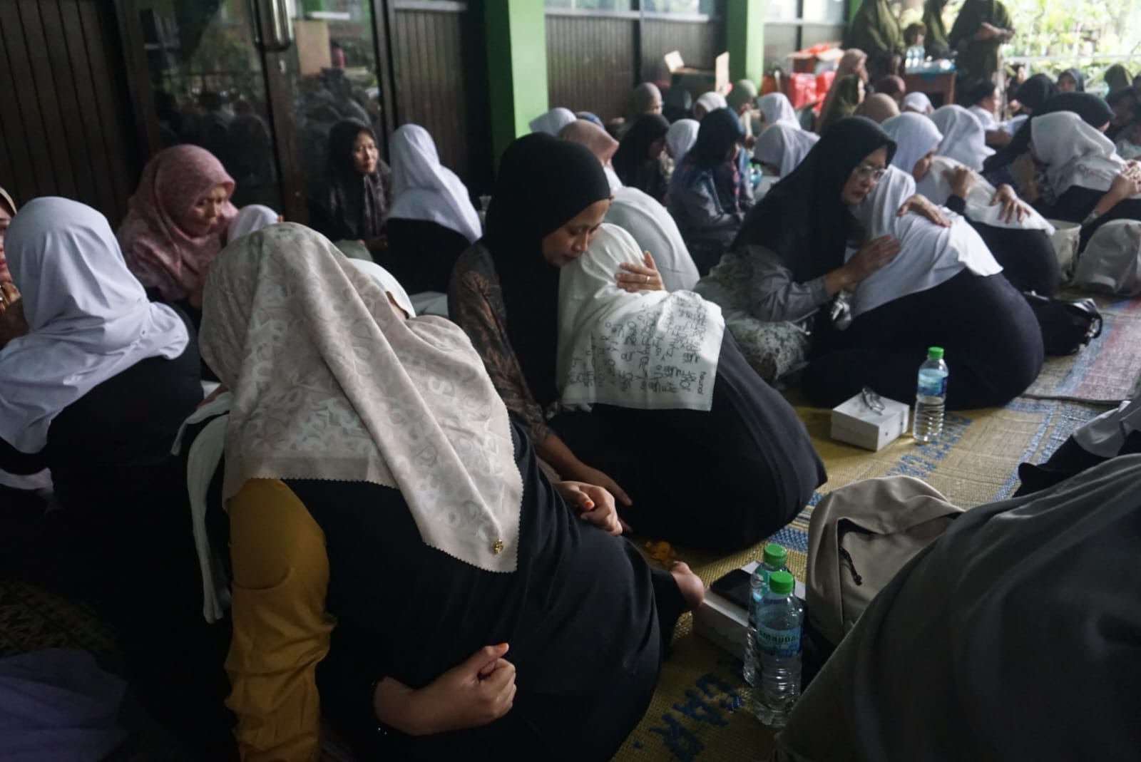 Mereka menunduk, mencium tangan bahkan lutut orang tua, memohon doa restu. Tangis haru pun pecah, tak terbendung baik dari siswa maupun orang tua yang hadir.