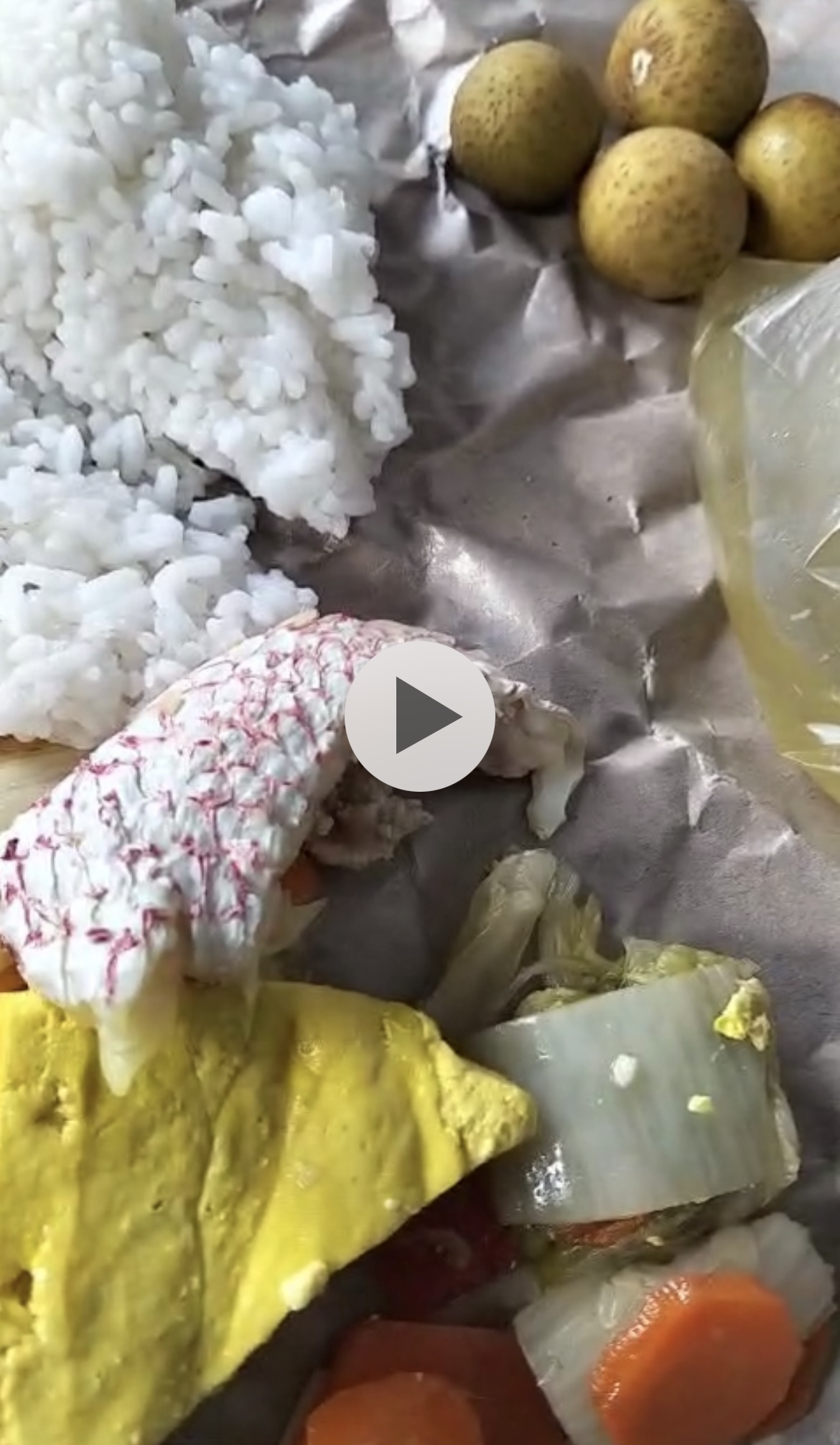 Dalam unggahan video tersebut, kondisi lauk ikan yang disajikan disorot karena dinilai tidak layak konsumsi.