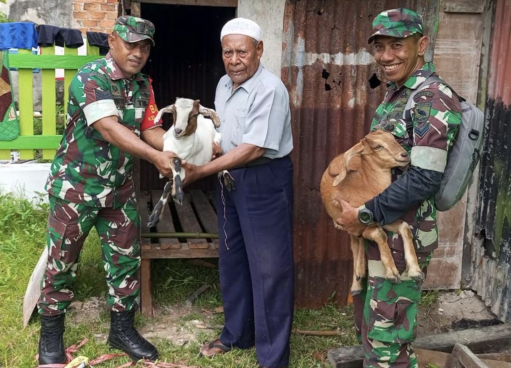 Bantuan yang diserahkan meliputi tiga pasang babi dan satu pasang kambing untuk masyarakat Malibela, serta dua pasang kambing dan satu pasang babi untuk masyarakat di Pulau Doom.