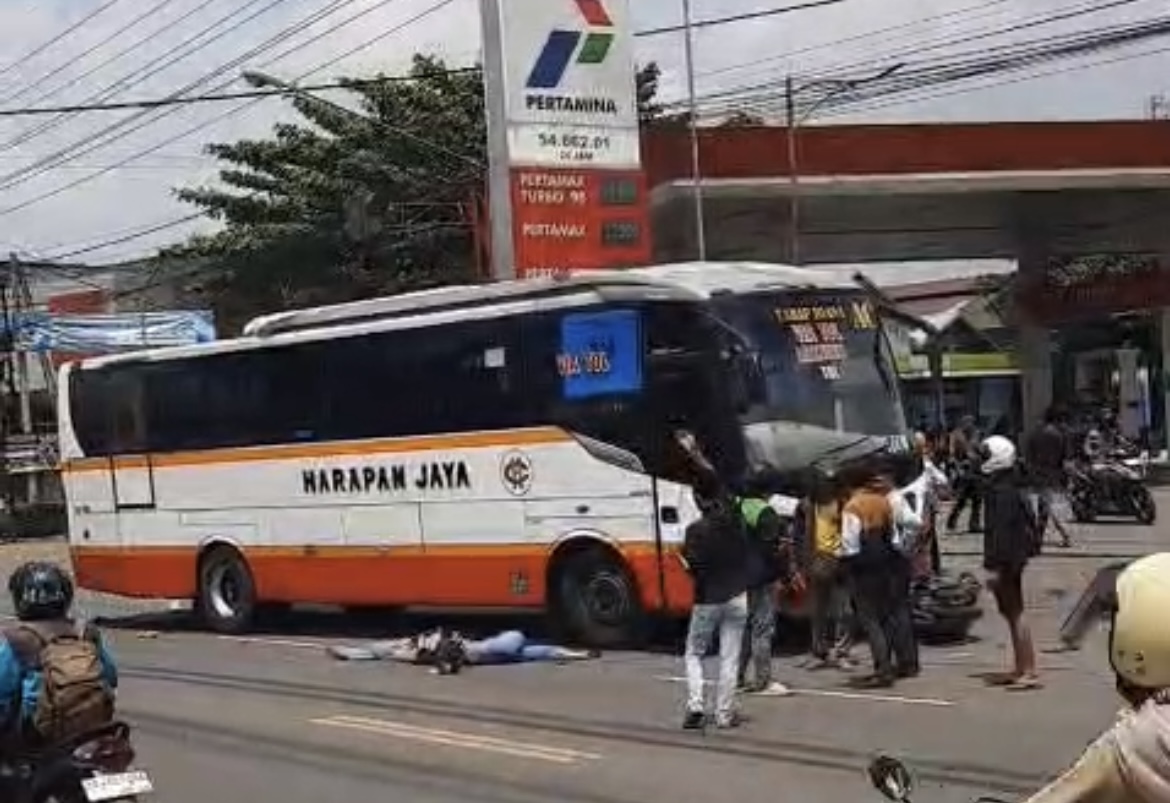 “Bus Harapan Jaya AG 7767 US melaju dengan kecepatan tinggi dan sempat mengambil jalur kanan untuk menghindari kendaraan lain. Karena laju tinggi, bus kehilangan kendali, berputar, dan bagian belakangnya menghantam dua motor. Dua orang meninggal dunia di lokasi,” ujarnya.
