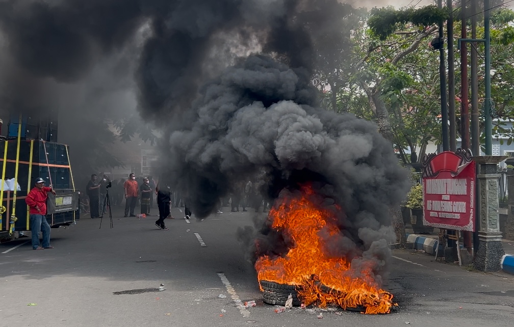 Ratusan Massa Pejuang Gayatri Kepung DPRD Tulungagung, Bakar Ban Jadi Simbol Perlawanan