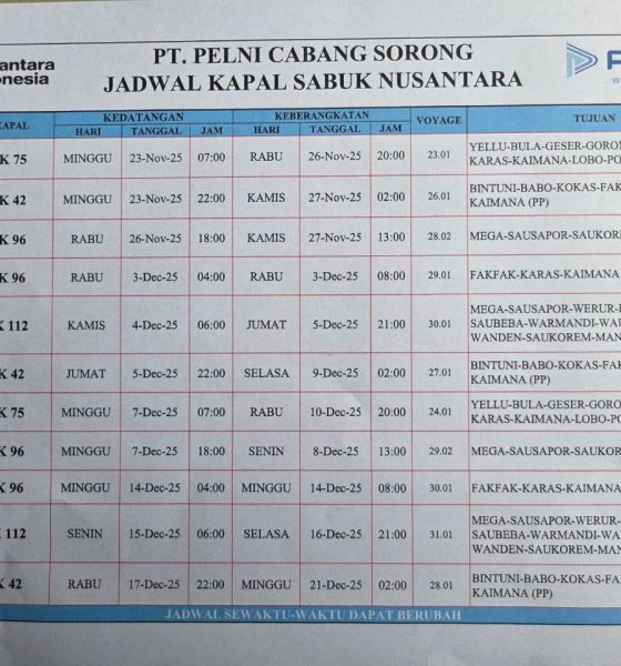 SORONG — Menjelang perayaan Natal 2025 dan Tahun Baru 2026 (Nataru), PT Pelayaran Nasional Indonesia (Persero) atau PELNI Cabang Sorong memastikan kesiapan penuh dalam melayani lonjakan...