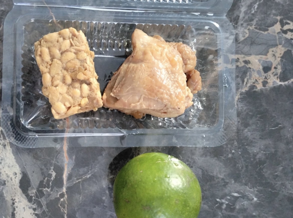 Dalam rekaman video yang beredar, menu MBG yang dibagikan hanya terdiri dari tiga item sederhana, potongan ayam kecil yang ukurannya bahkan tidak lebih besar dari dua ibu jari, sepotong tempe bacem, serta satu buah jeruk peras.