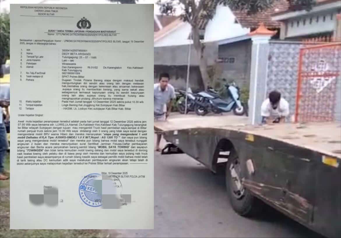 BLITAR — Dugaan praktik penarikan paksa kendaraan kembali mencuat di Kabupaten Blitar. Seorang konsumen melaporkan peristiwa yang dialaminya ke Polres Blitar dengan pendampingan hukum dari Lembaga Perlindungan Konsumen Republik Indonesia (LPK-RI) melalui DPC Tulungagung dan DPC Trenggalek, Rabu (18/12/2025).