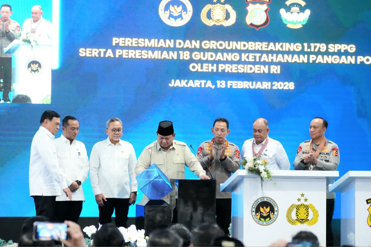 Penganugerahan tersebut dilaksanakan dalam rangkaian peresmian dan groundbreaking 1.179 Satuan Pelayanan Makan Bergizi Gratis (SPMBG) serta peresmian 18 gudang ketahanan pangan Polri, Jumat (13/2/2026).