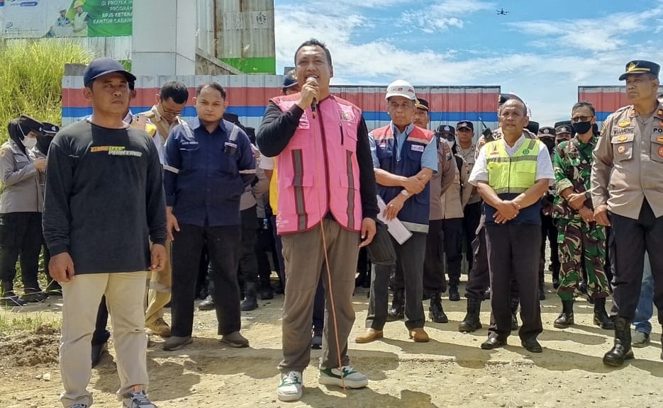 Di tengah tensi massa, pihak PPK Kementerian PUPR Pusat, Budiyana, menyampaikan komitmennya untuk bertanggung jawab dan menyelesaikan persoalan ini bersama perwakilan PT HK Gala, Adhi.