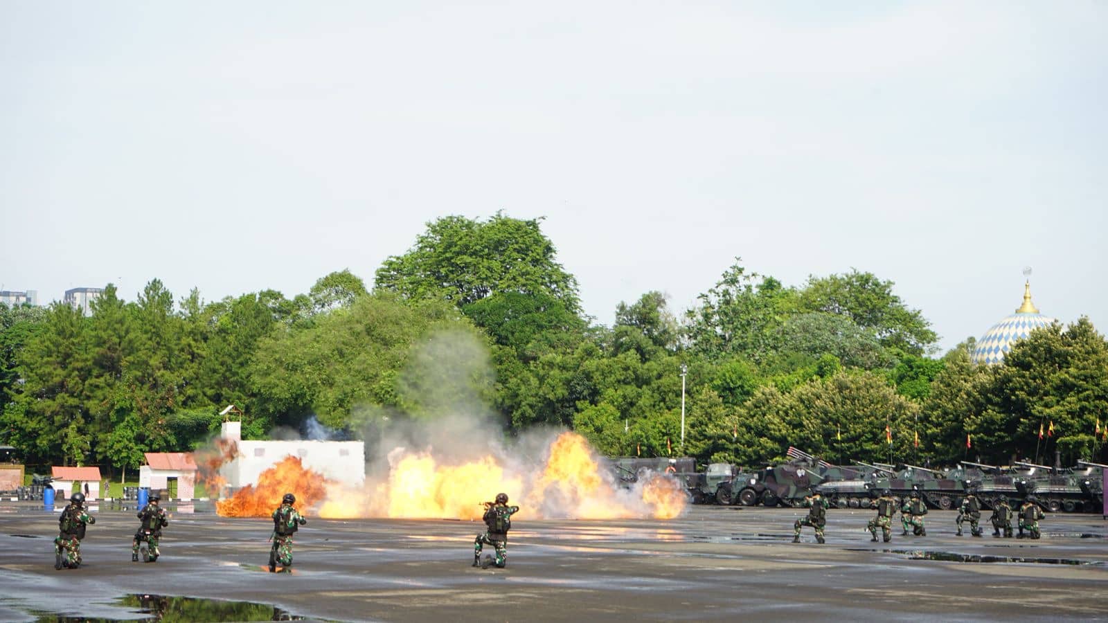 Para prajurit terus menunjukkan kekompakan, ketelitian, dan kedisiplinan selama latihan berlangsung.