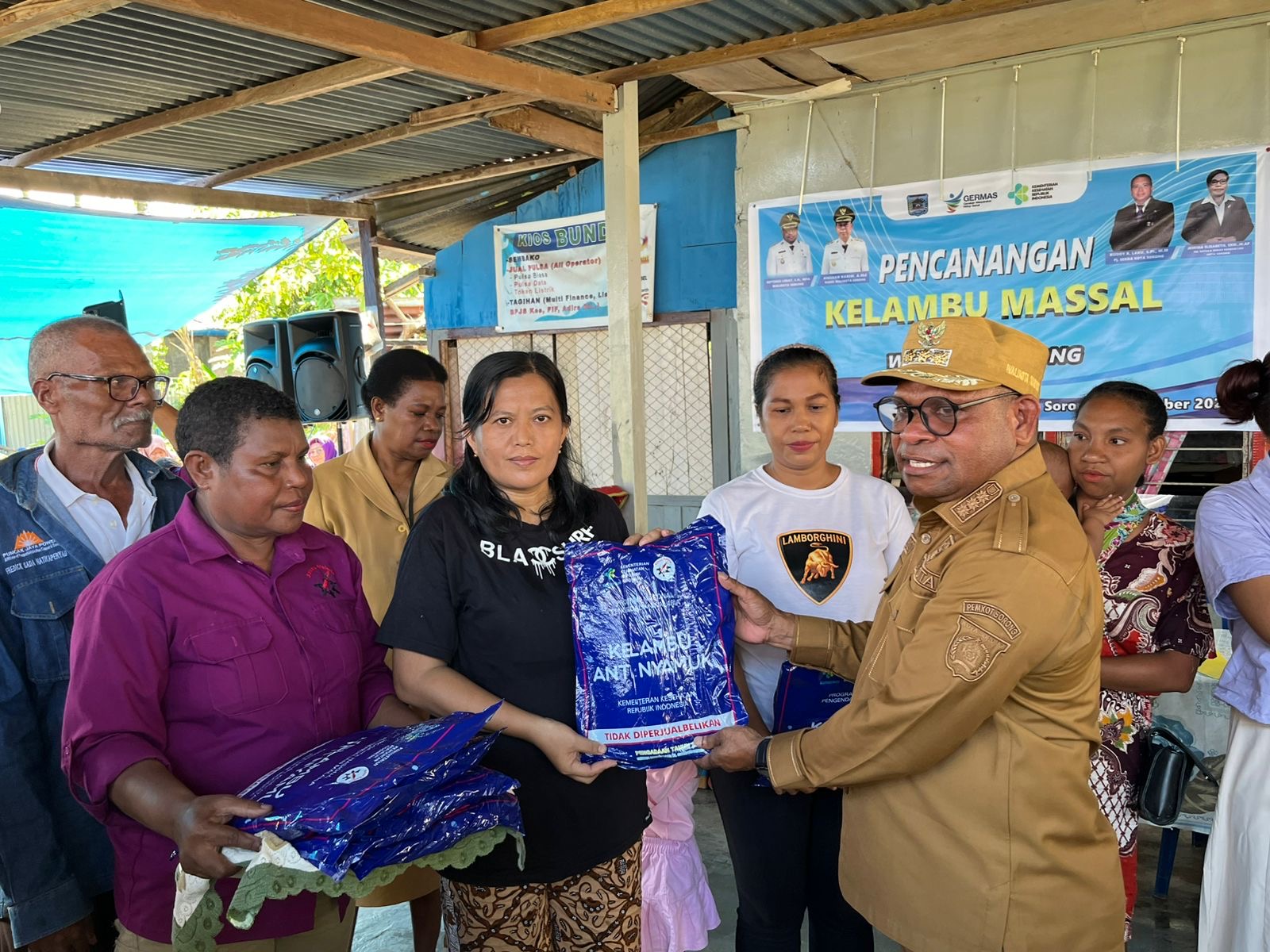 Kota Sorong PBD– Pemerintah Kota Sorong melalui Dinas Kesehatan menggelar pencanangan pembagian kelambu massal yang berlangsung di Posyandu Bahagia, Kelurahan Klawasi, Distrik Sorong Barat, Selasa (07/10/2025).